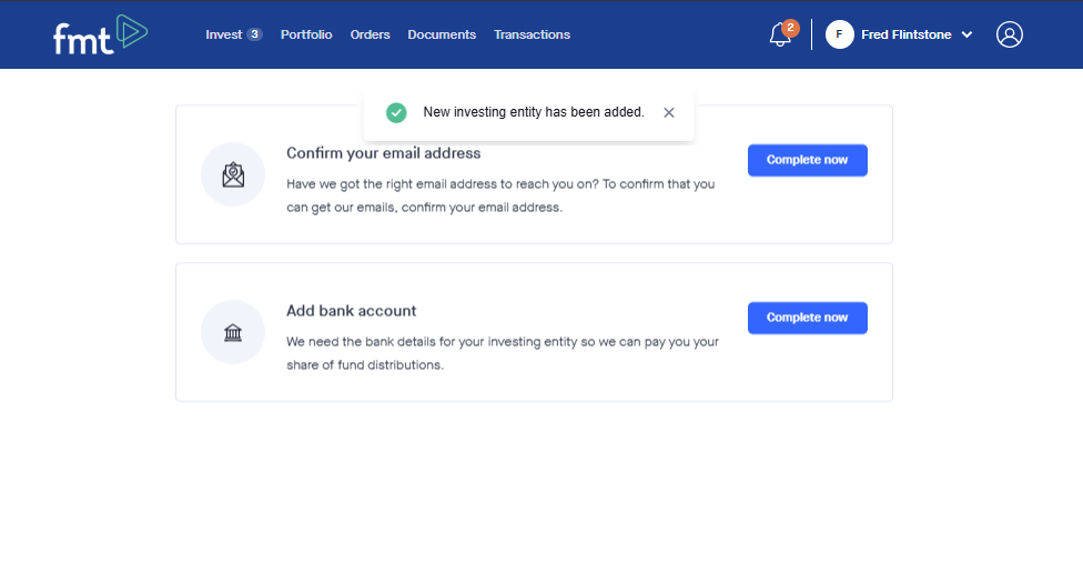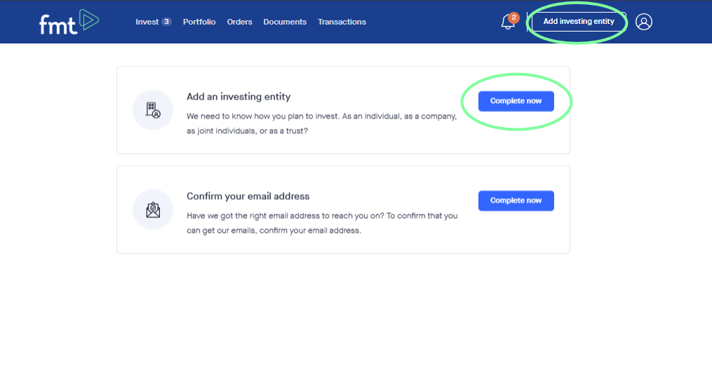 You can have multiple investing entities set up, and you’ll need to go through this process for each of them.
