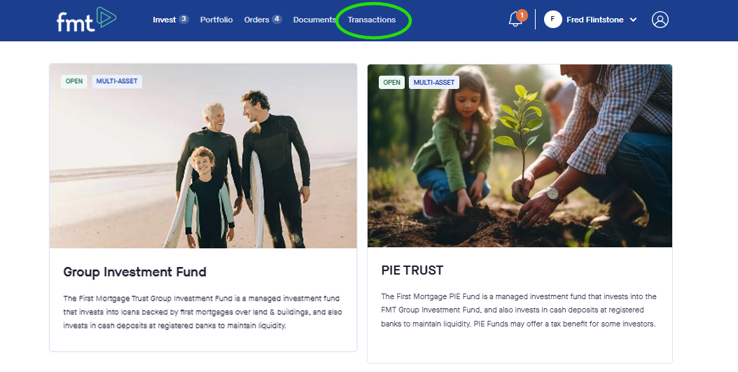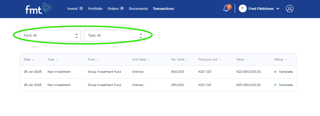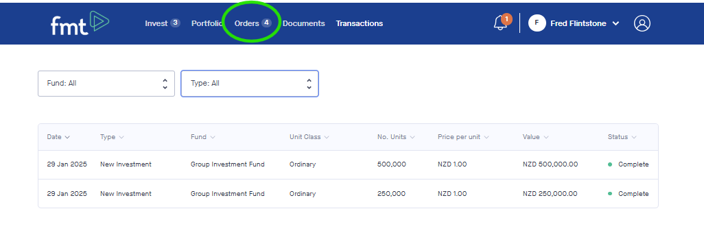 If you want to check an allocation or redemption request, you need to click on the “Orders” button in the top toolbar